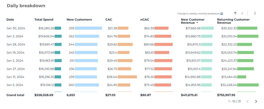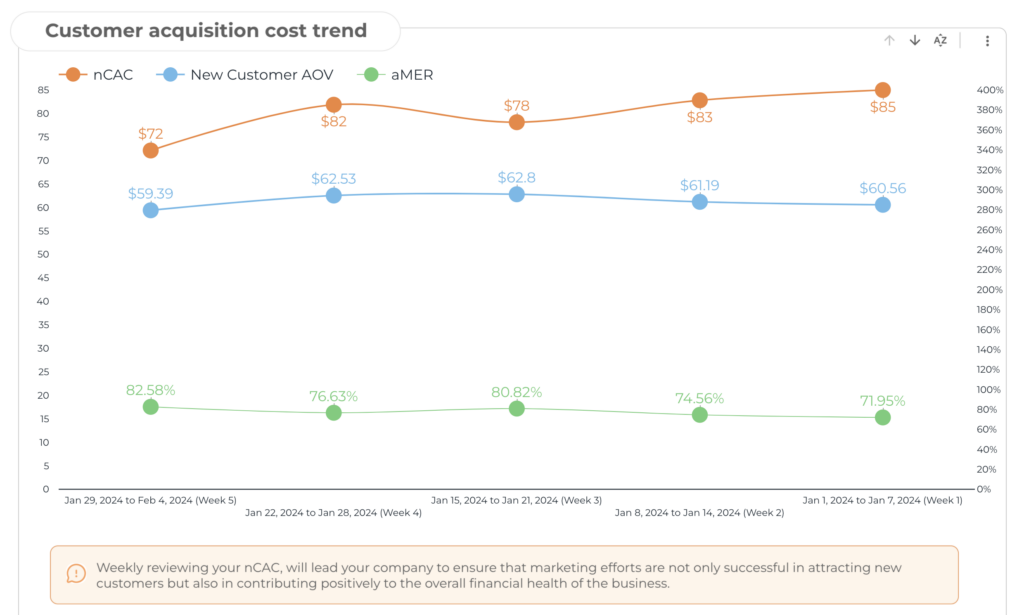 Weekly reviewing your nCAC, will lead your company to ensure that marketing efforts are not only successful in attracting new customers but also in contributing positively to the overall financial health of the business.